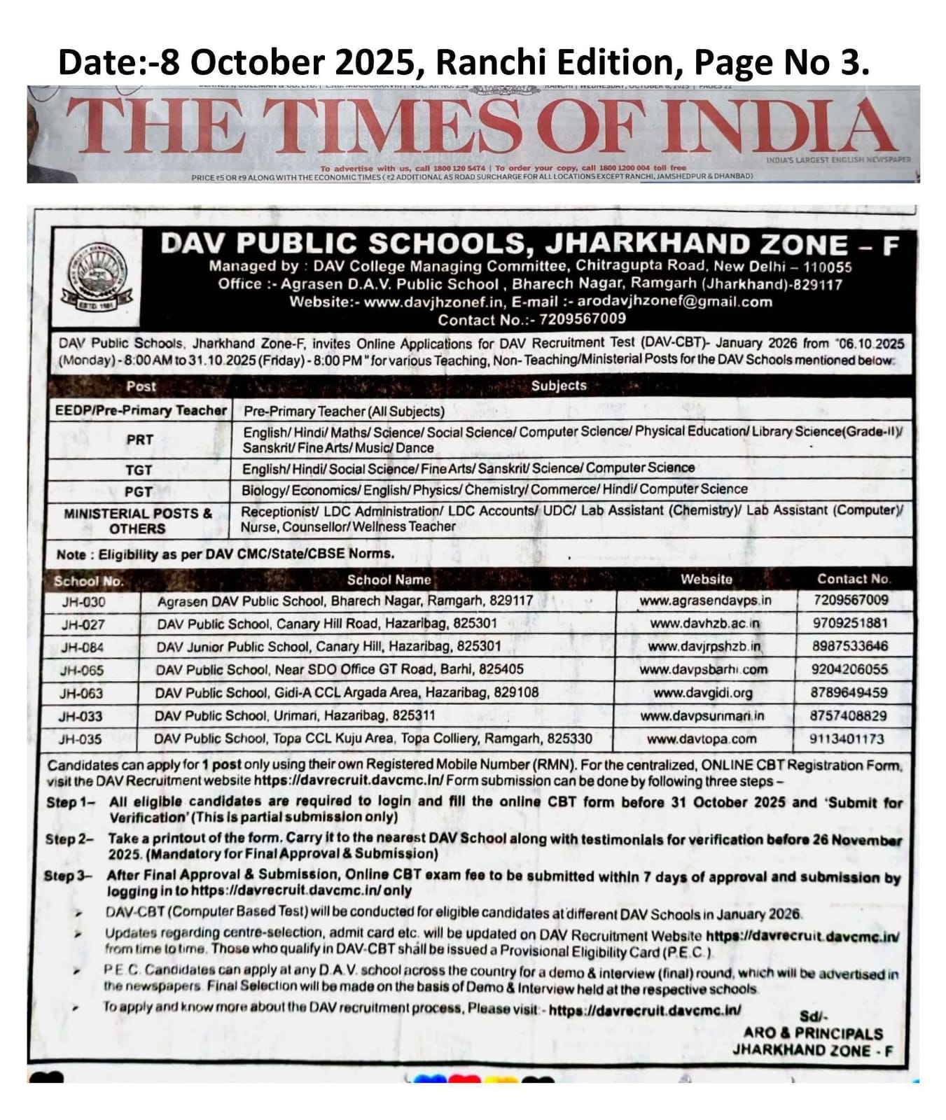 Please visit our JH ZONE-F Website: davjhzonef.in